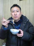 その北口、コージーコーナー前で待っていると、10分前にいきなり着ぶくれのタヌキが現れた。「がっはっは」と笑っているその顔が、なぜか既に赤い。親分、酒臭いっすよ。「おお、もう飲んできたもん。だって1時間も前に着いちゃったから。がっはっは」。