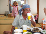 途中、近所に住むギタリストのワダくんが、サーフボードの形をした地元名物のどら焼きを差し入れに、遊びに来た。収録の中の1曲でワダ君がギターを弾いているのだが、その音色がかてつの吉田拓郎のバックバンドにそっくりで、個人的に大受けなのであった。