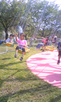 樹林公園という名前の通り、木々がいっぱいのこの公園は大のお気に入りである。ここの広〜い芝生公園で息子と娘がそれぞれ凧を揚げる。周りも同じような凧揚げ小僧でいっぱいだ。