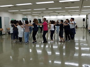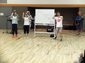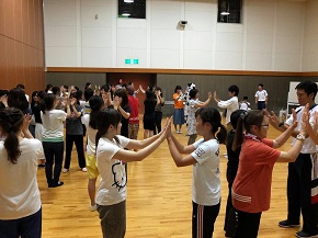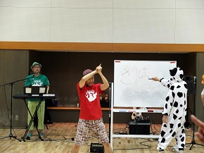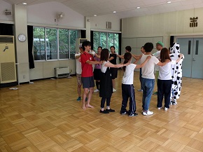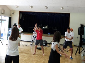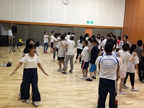 新曲の「スバヤインジャー」はみんなで剣道の素振りに汗を流し、フォークダンスの「カエルのジェンカ」では大きな輪ができました。
